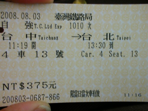 早上十點多買了張自強號的火車票,
